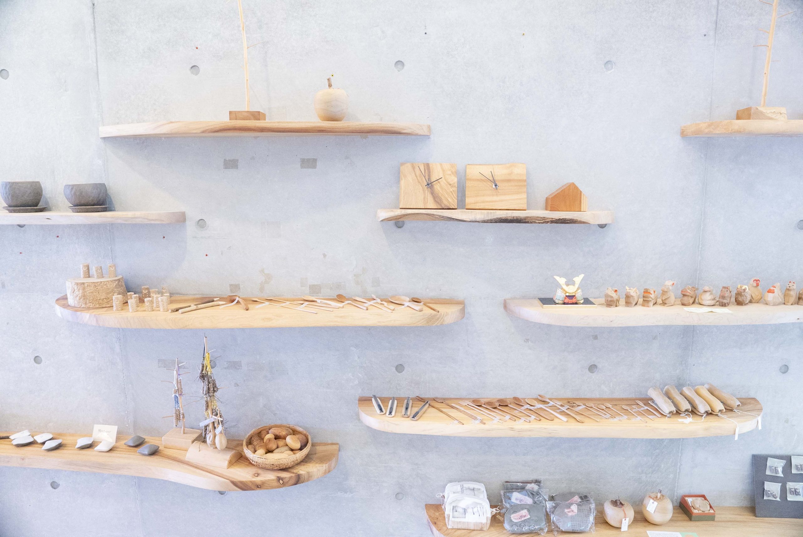 匠の聚のアーティストが作った手づくりの作品を販売しています。陶器をはじめ自然の素材を利用したしたユニークな木彫品などを販売しています。
